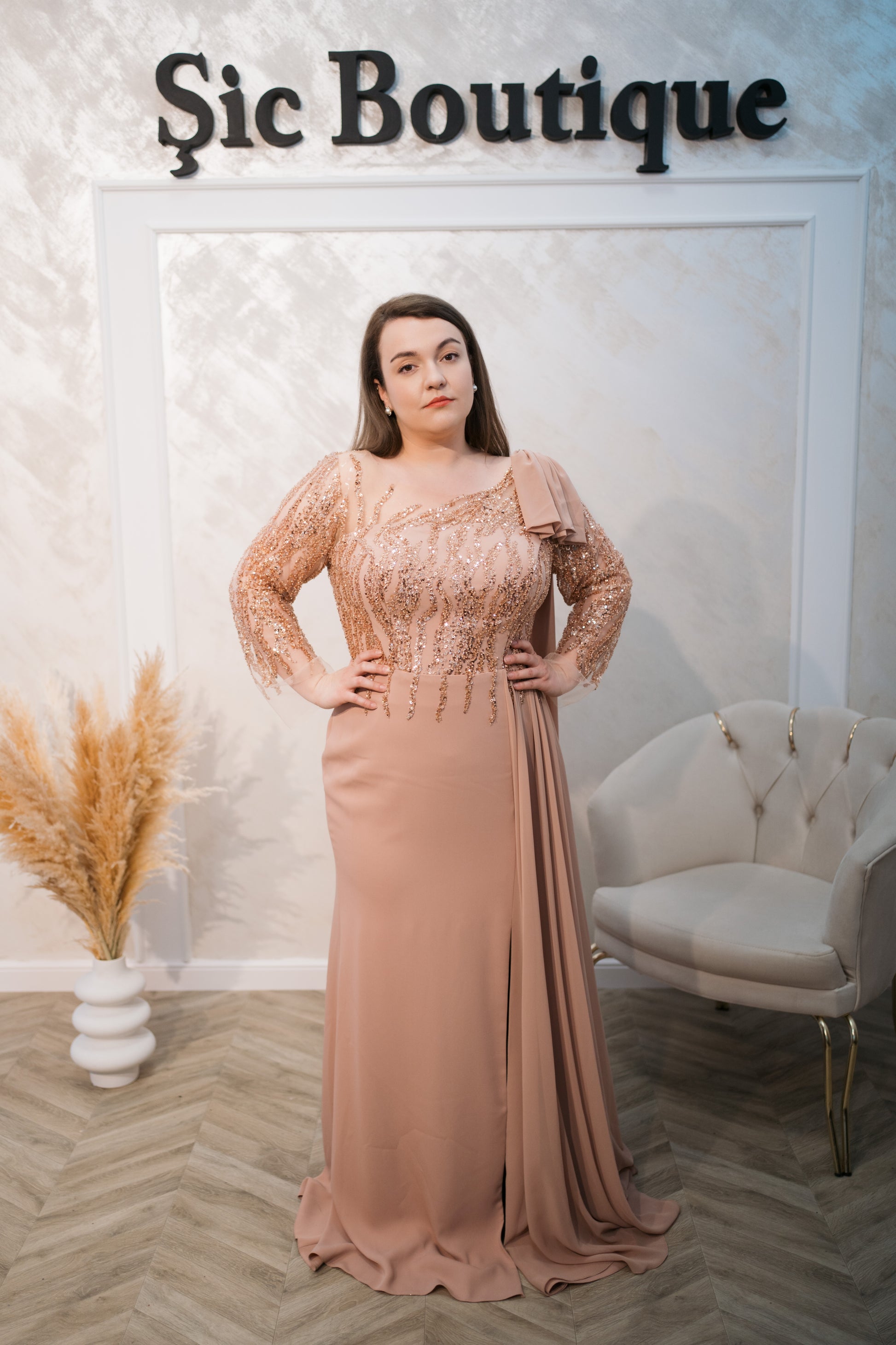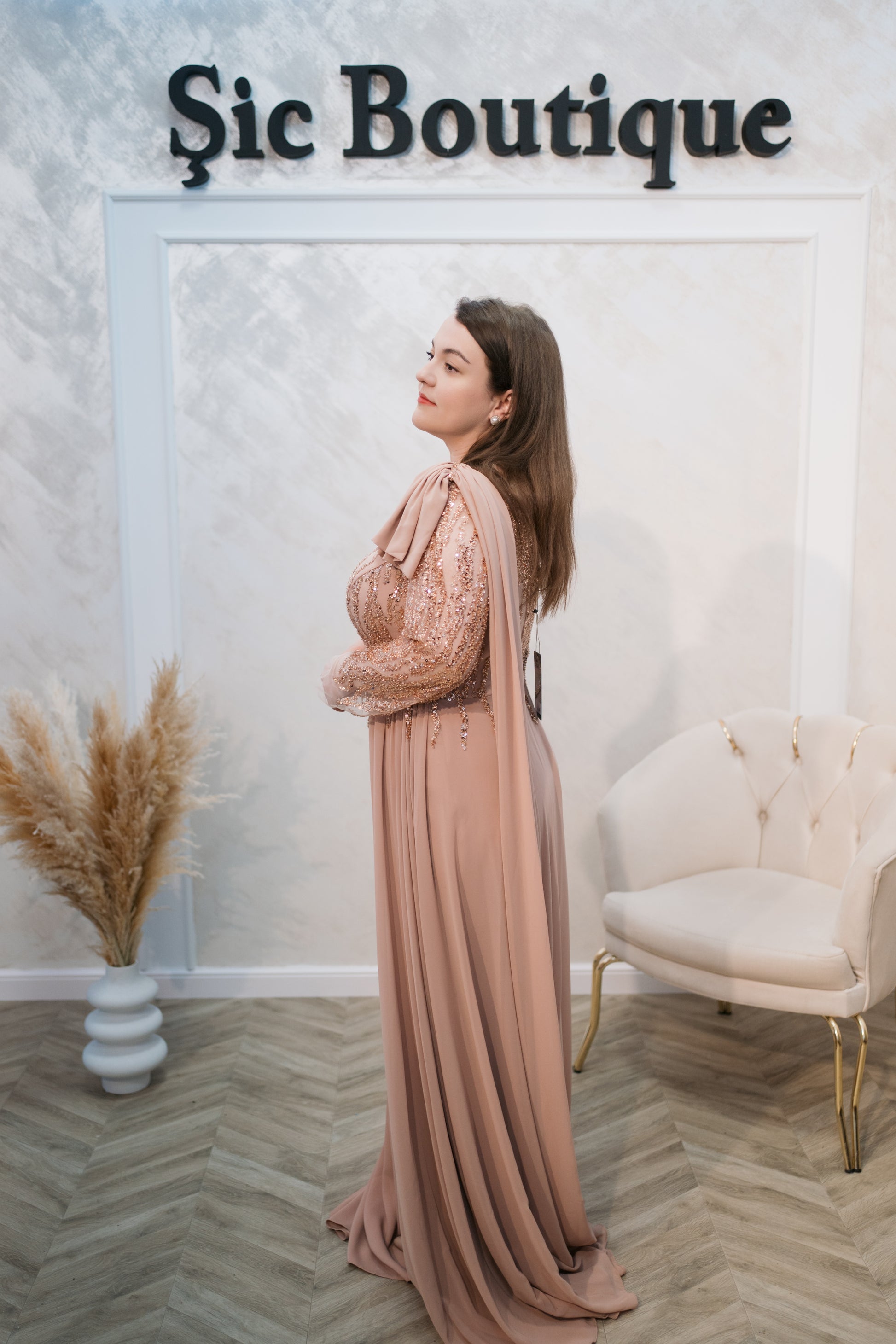Rochia Desire – o piesă de o eleganță aparte, realizată din voal extrem de fin, cu inserții delicate de dantelă, paiete și cristale. Strălucește discret, pentru ca eleganța purtătoarei să fie cu adevărat remarcabilă.