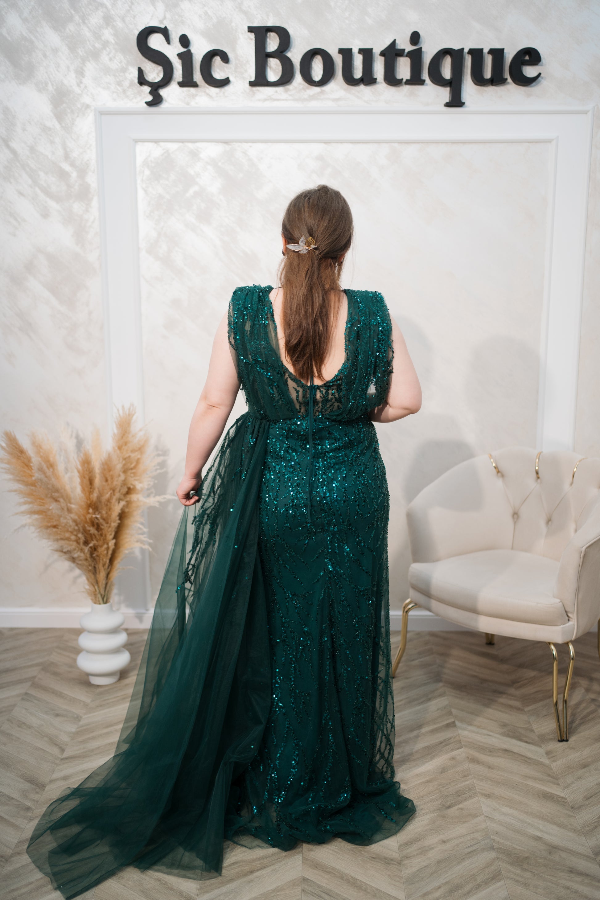 Rochie Green – Rochie godet din dantelă cu paiete și trena din tulle, ediție limitată.