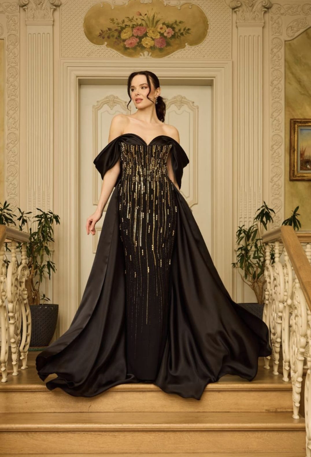 Rochia Hellene este o rochie de seară spectaculoasă, realizată din organza lichidă – unul dintre cele mai apreciate materiale ale acestui an. Cu un croi care urmează linia corpului datorită texturii ușor elastice, rochia este inserată cu paiete și cristale aurii ce oferă un efect de strălucire luxuriantă. Designul rafinat și realizarea în ediție limitată o transformă într-o alegere exclusivistă pentru nașe, soacre sau evenimente de gală.