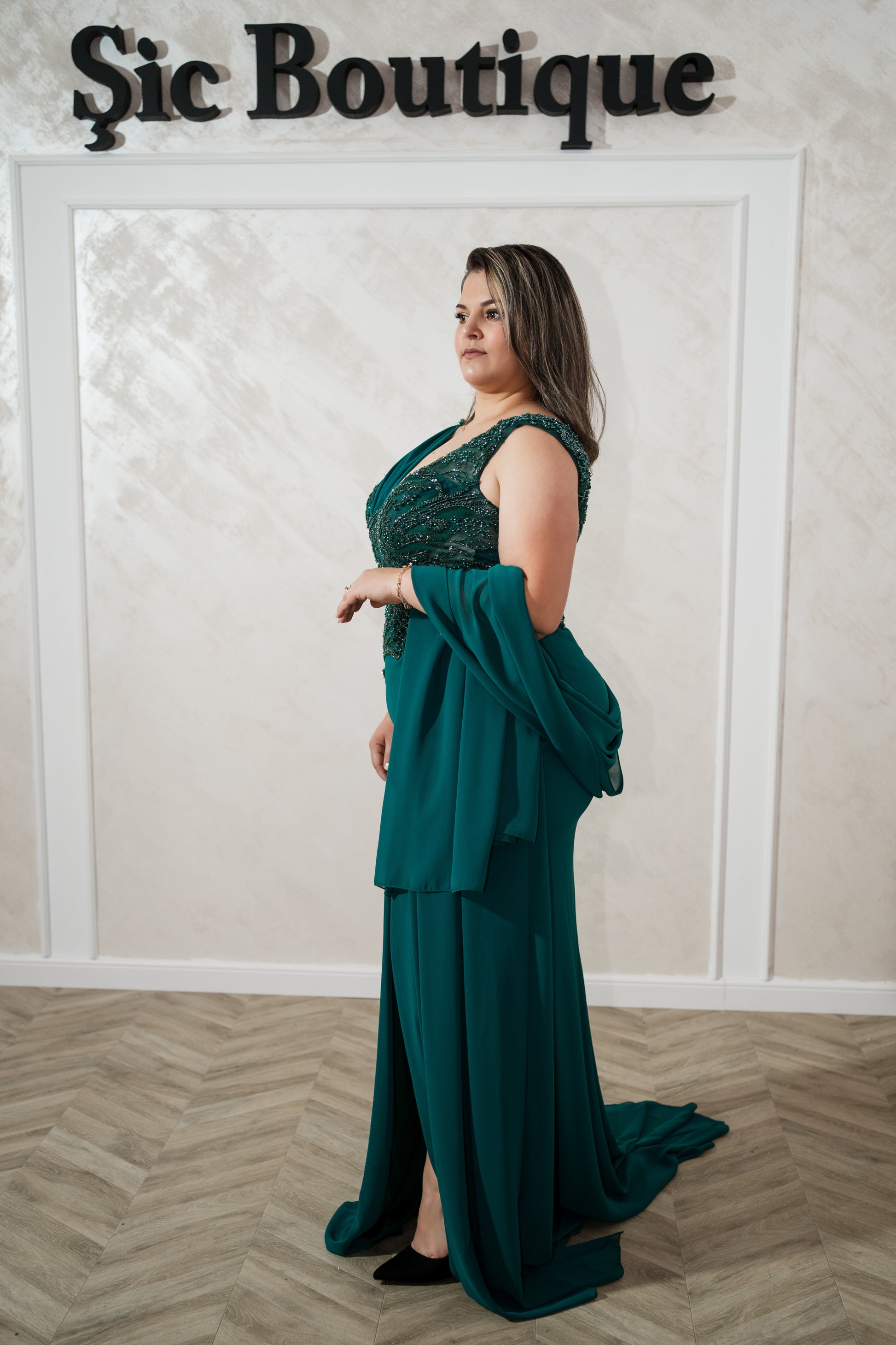 Rochia Verona este realizată din material elastic și voal lejer, împodobită cu dantelă cusută manual. Este alegerea ideală pentru o nașă sau o soacră care își dorește o apariție elegantă, rafinată și memorabilă la evenimente speciale.