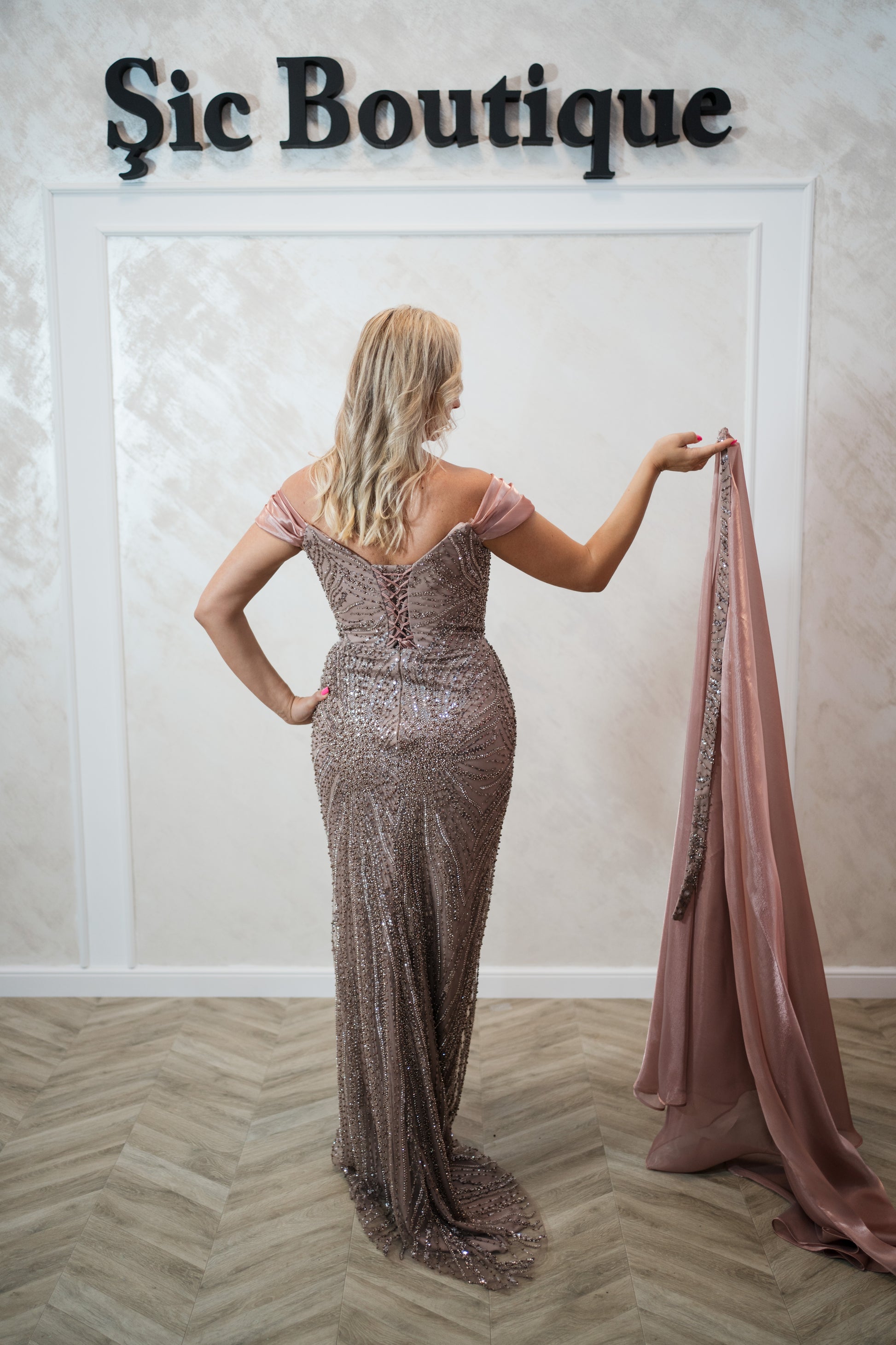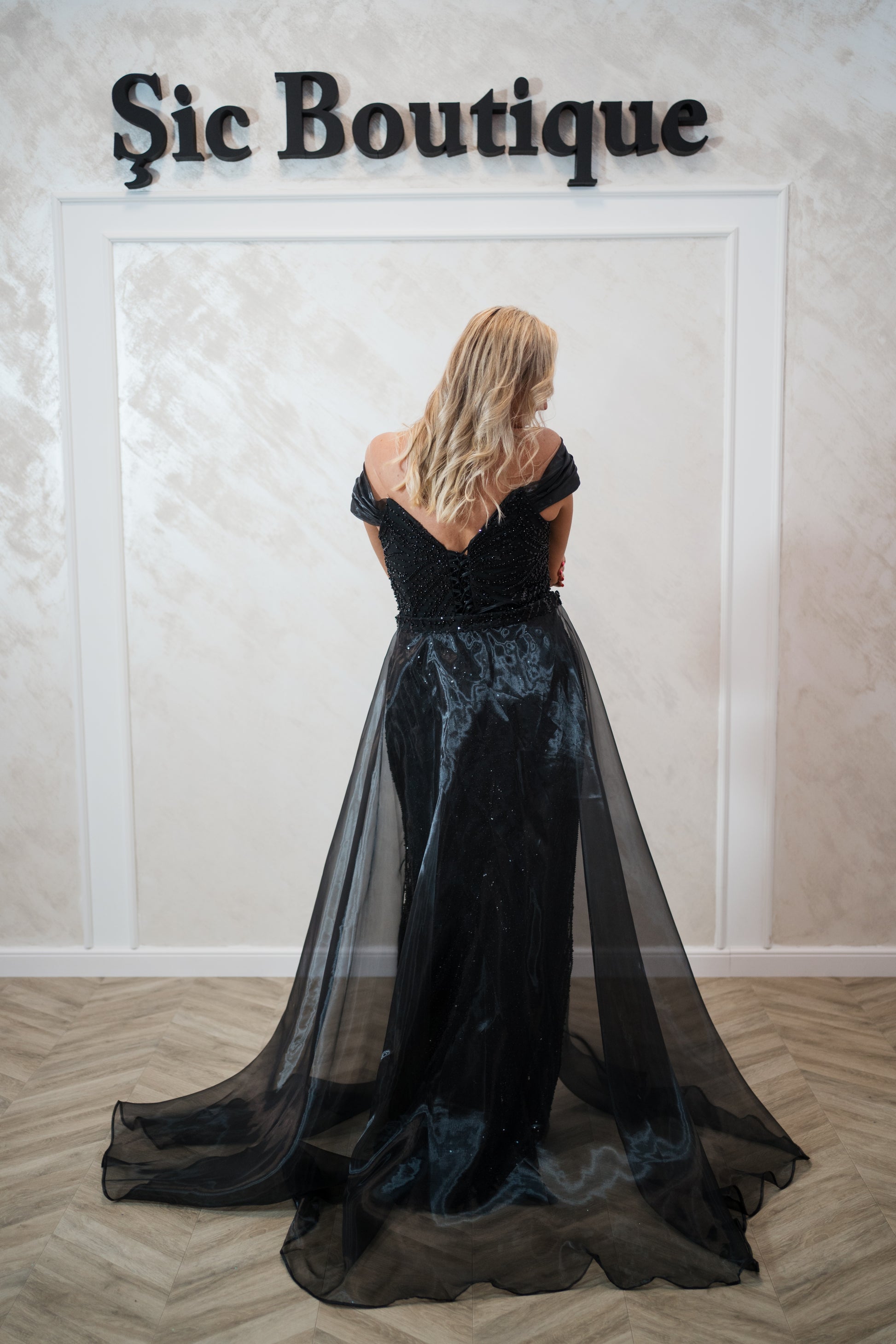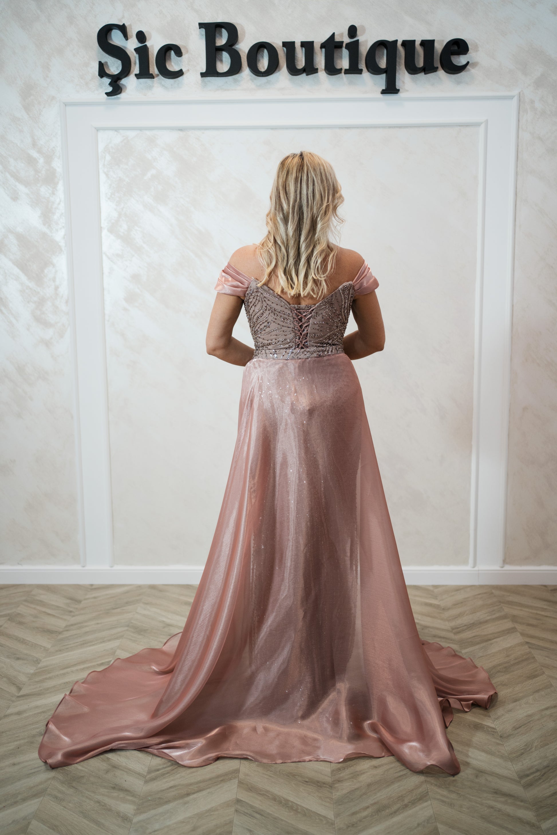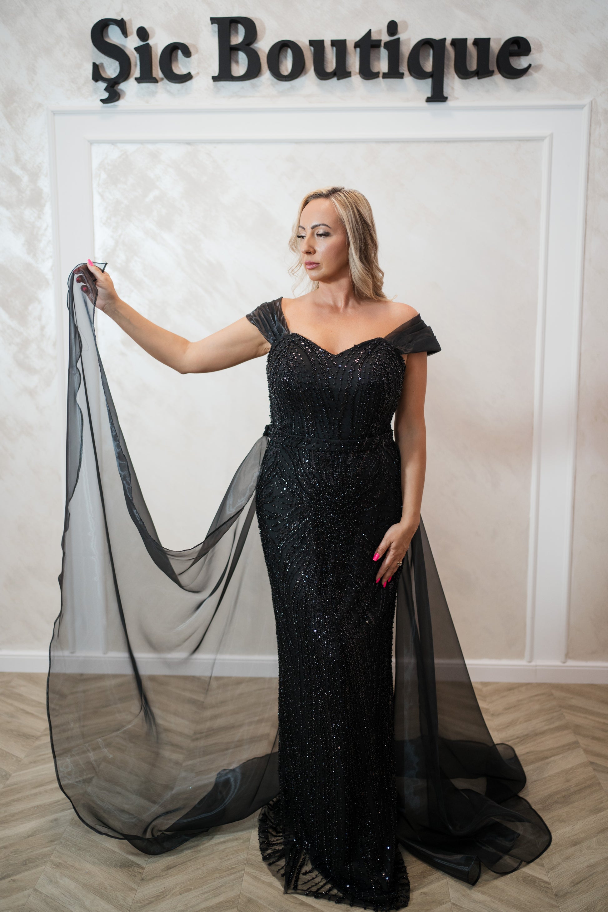 Alege rafinamentul absolut cu această rochie de seară spectaculoasă cu trenă detașabilă, creată pentru femeile care vor să impresioneze la orice eveniment special. Disponibilă în două culori elegante – negru intens și roz pudră delicat, rochia este decorată cu paiete fine care captează lumina din orice unghi.